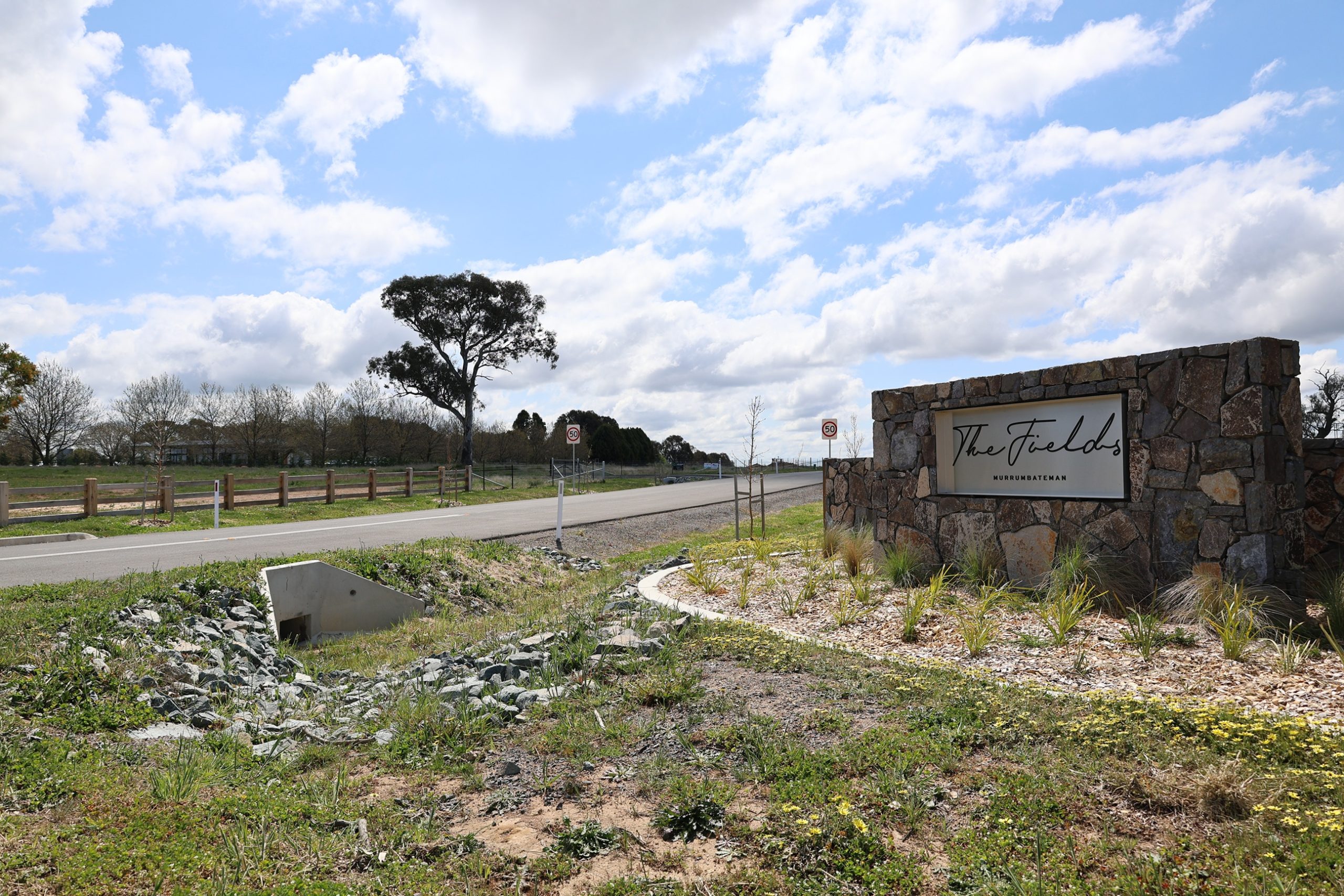 ‘The Fields’ Stage 3 is a 27 block residential subdivision within the NSW township of Murrumbateman. Wodens worked collaboratively with a private developer to tender this project and was successful in being awarded the work in early 2023. The project involved upgrading an existing T intersection to a roundabout, earthworks, hydraulic works, road and pavement construction, concrete works, installation of underground utilities and services built to the Aus-spec standards, as well as management of NSW Environmental controls including tree management.