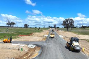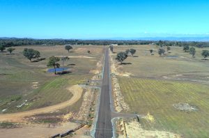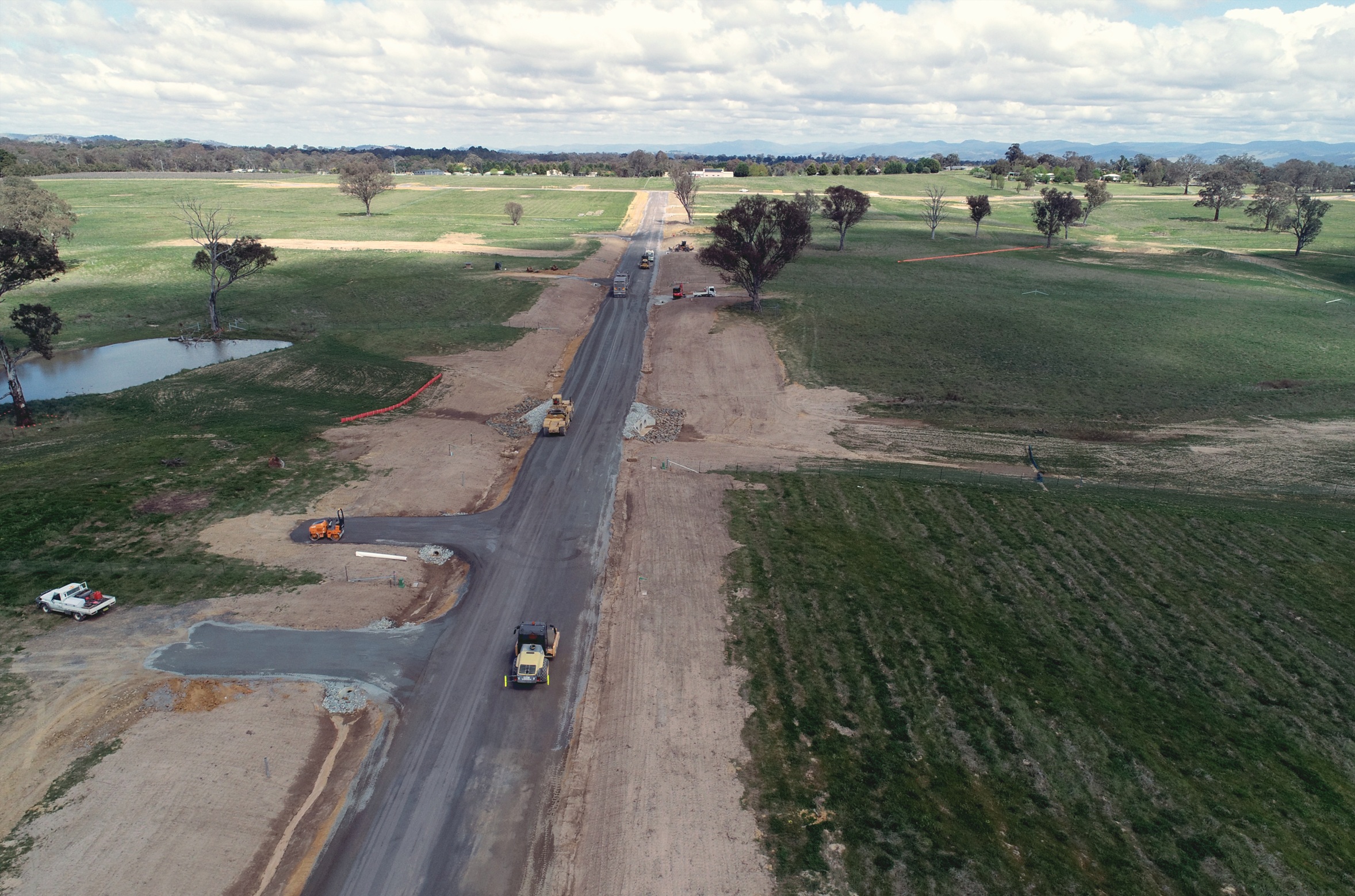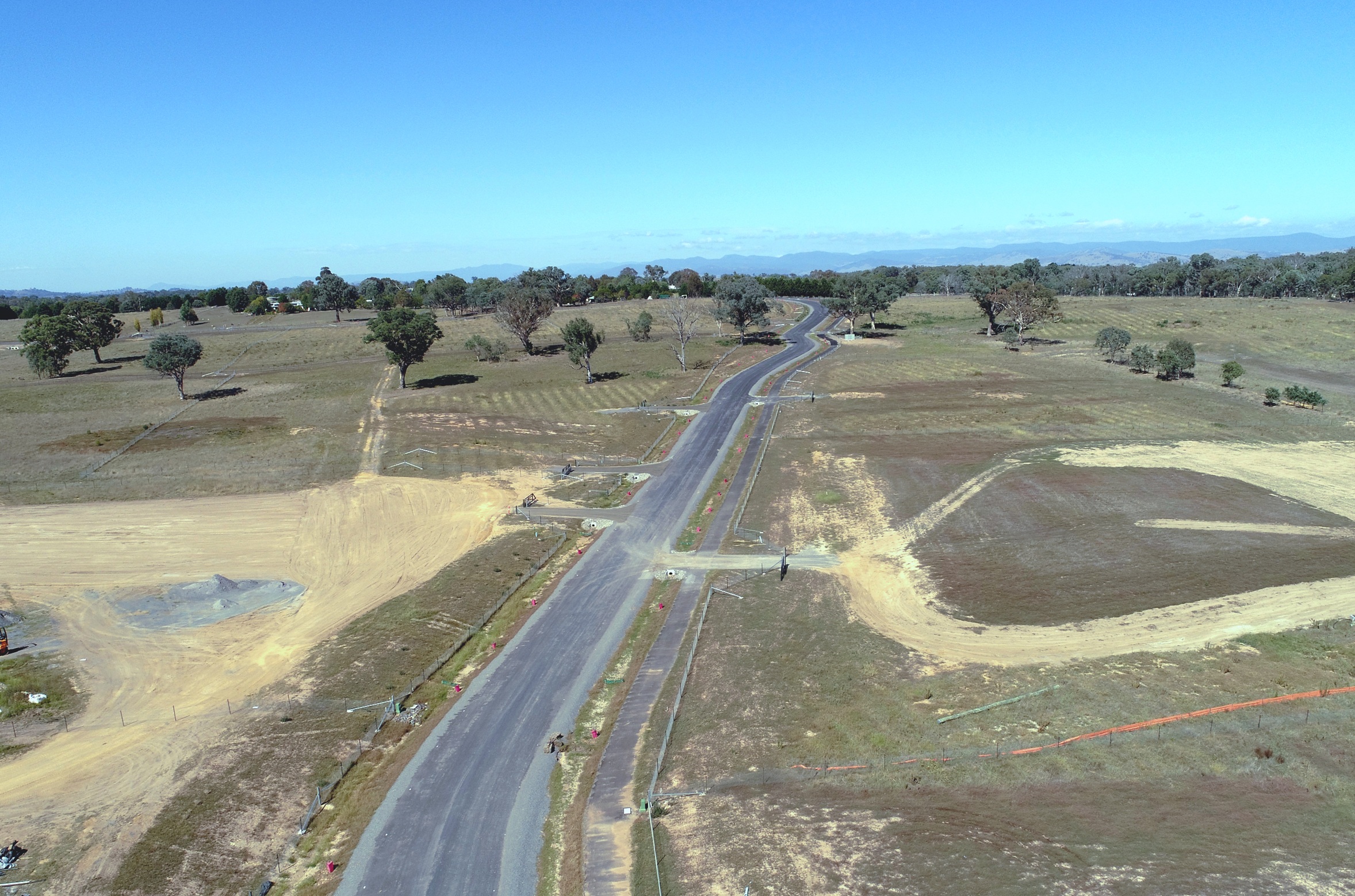 The construction encompassed 1.95 km of internal rural roads, electricity supply, NBN service conduits, footpaths, fencing, community title water supply, entry walls and landscaping.